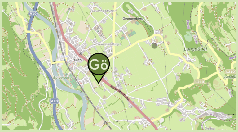Unser Garten ist am südlichen Rand von Kuchl. Hier findet auch die Abholung statt.