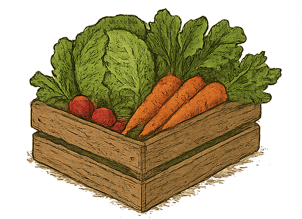 Frisches, regionales Gemüse direkt vom Feld – mit unserer Gemüse-Kiste bekommst du jede Wochen eine bunte Auswahl an knackigen, vitaminreichen Gemüsesorten.